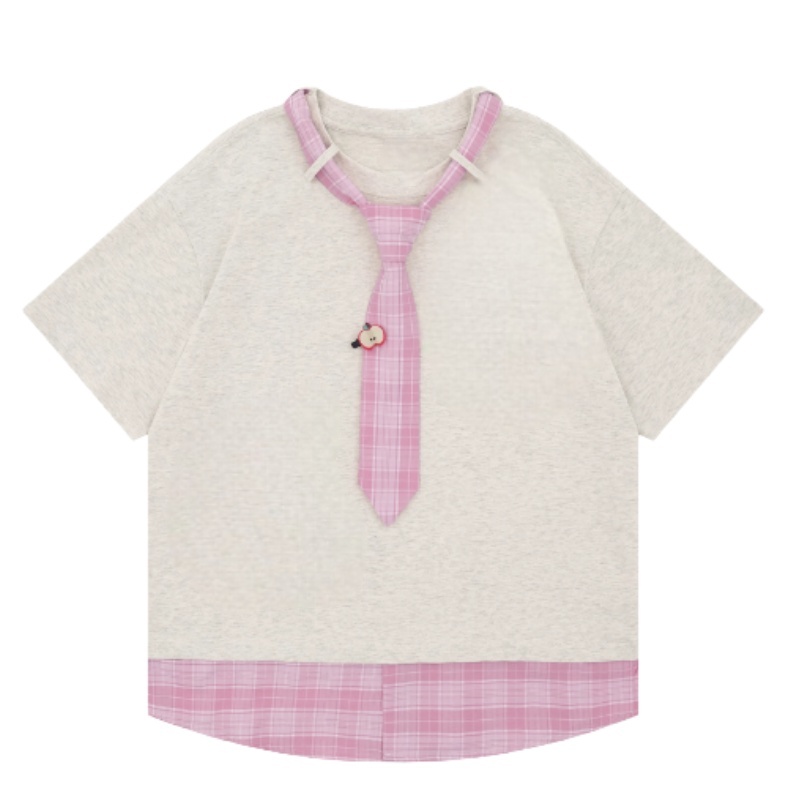 Be the first to review “Plaid Tie Patchwork Fake Two-Piece T-Shirt”