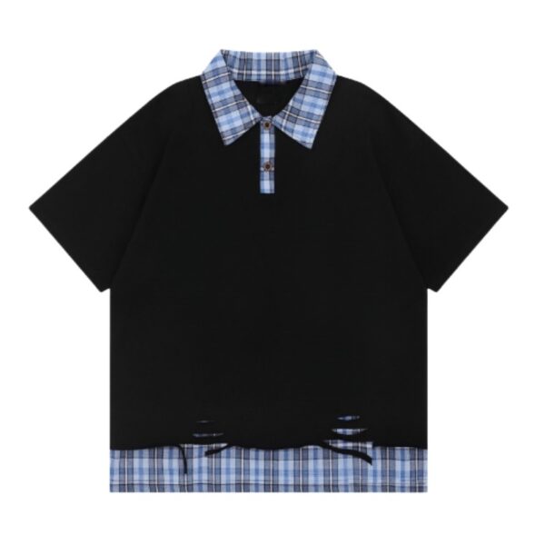 Be the first to review “Ripped Blue Plaid Patchwork T-Shirt”